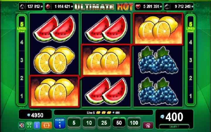 Što se tiče igre Ultimate Hot pružiće vam se šansa da uživate u voćnim plodovima na tri kolone u tri reda i 5 isplatnih linija. Linije za isplatu su obeležene u posebnom odeljku duž kolona slota sa leve i sa desne strane.