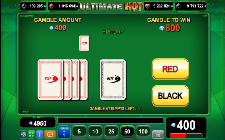 Naime, online kazino igra Ultimate Hot poseduje mini bonus igru kockanja koja se pokreće uz pomoć tastera Gamble, koji se pojavi na komandnoj tabli.