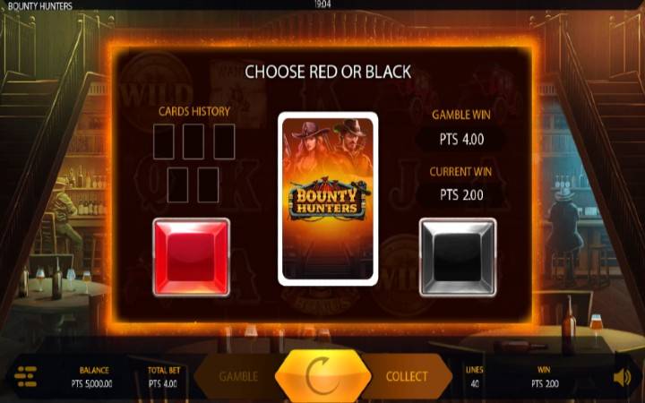 Bounty Hunters sadrži i bonus kockanja, a sve što treba da uradite da biste duplirali dobitak jeste da pogodite koje boje će biti naredna izvučena karta iz špila, crne ili crvene.