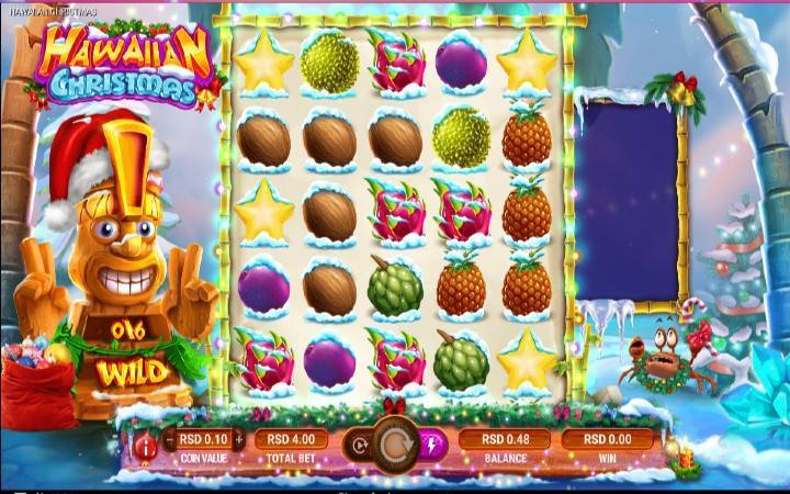 Već smo pomenuli da je u decembru hladno i u većini zemalja u vreme Božića napolju se nalazi snežni pokrivač. Zamislite da se za vreme praznika nalazite na Havajima. Upravo to vam omogućava proizvođač kazino igara Game Art sa slotom Hawaiian Christmas. Slot ima pet kolona u pet redova, ali je zanimljivo da tokom bonus besplatnih spinova dolazi do proširenja kolona, pa se igra sa 7 kolona u 7 redova.